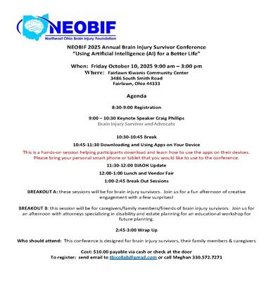 NEOBIF has adopted the Brain Injury Network’s definition of brain injury (BI), which is defined as “…traumatic brain injuries, strokes, brain illness, and any other kind of brain injury acquired after birth. However, a BI does not include what are classified as degenerative brain conditions such as Alzheimer’s disease or Parkinson’s disease.”